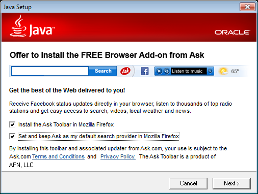 The fact you have to hurdle through this bullshit to install or update the JRE is part of the reason I think Java is quickly dying out in desktop applications.